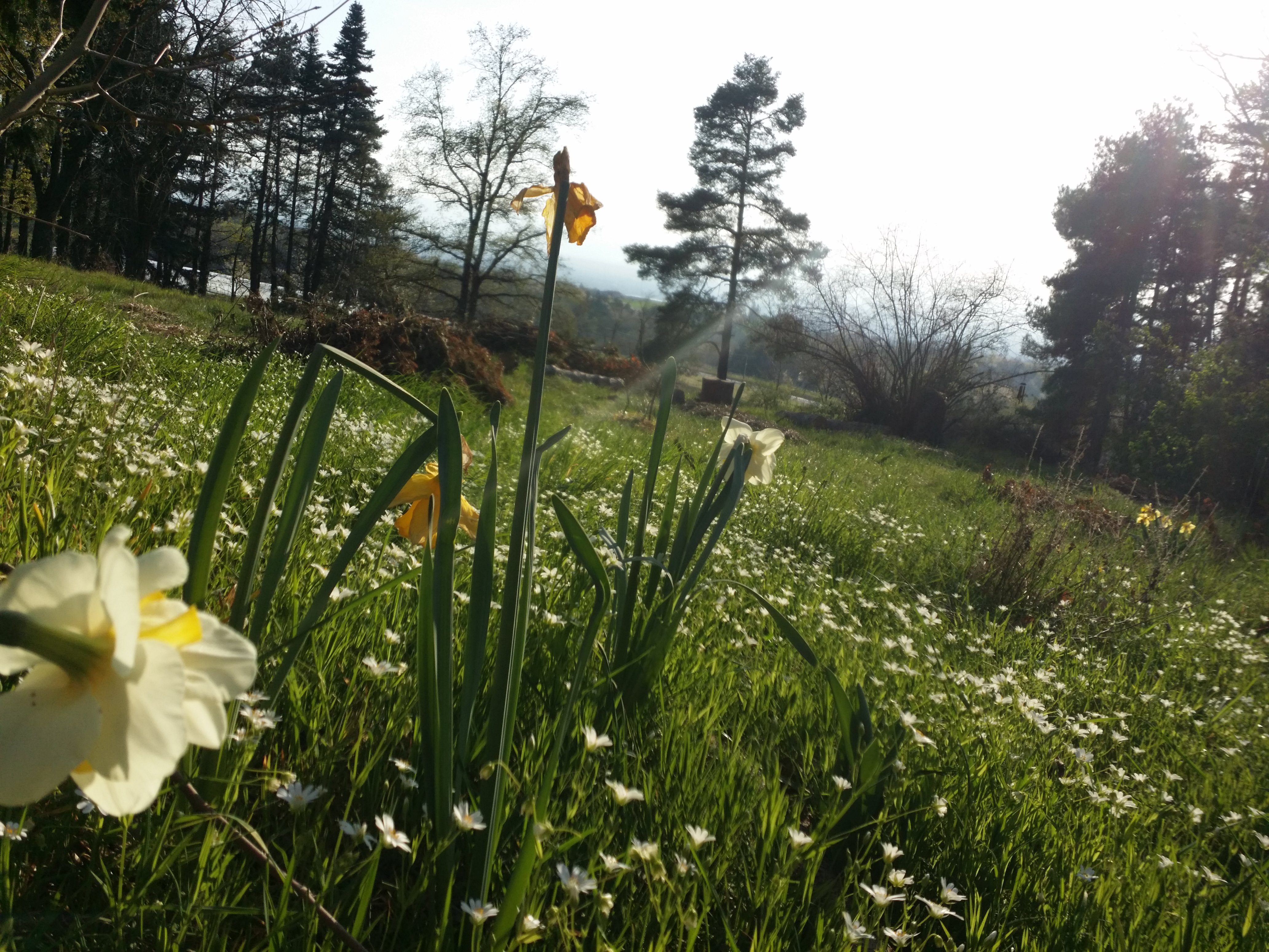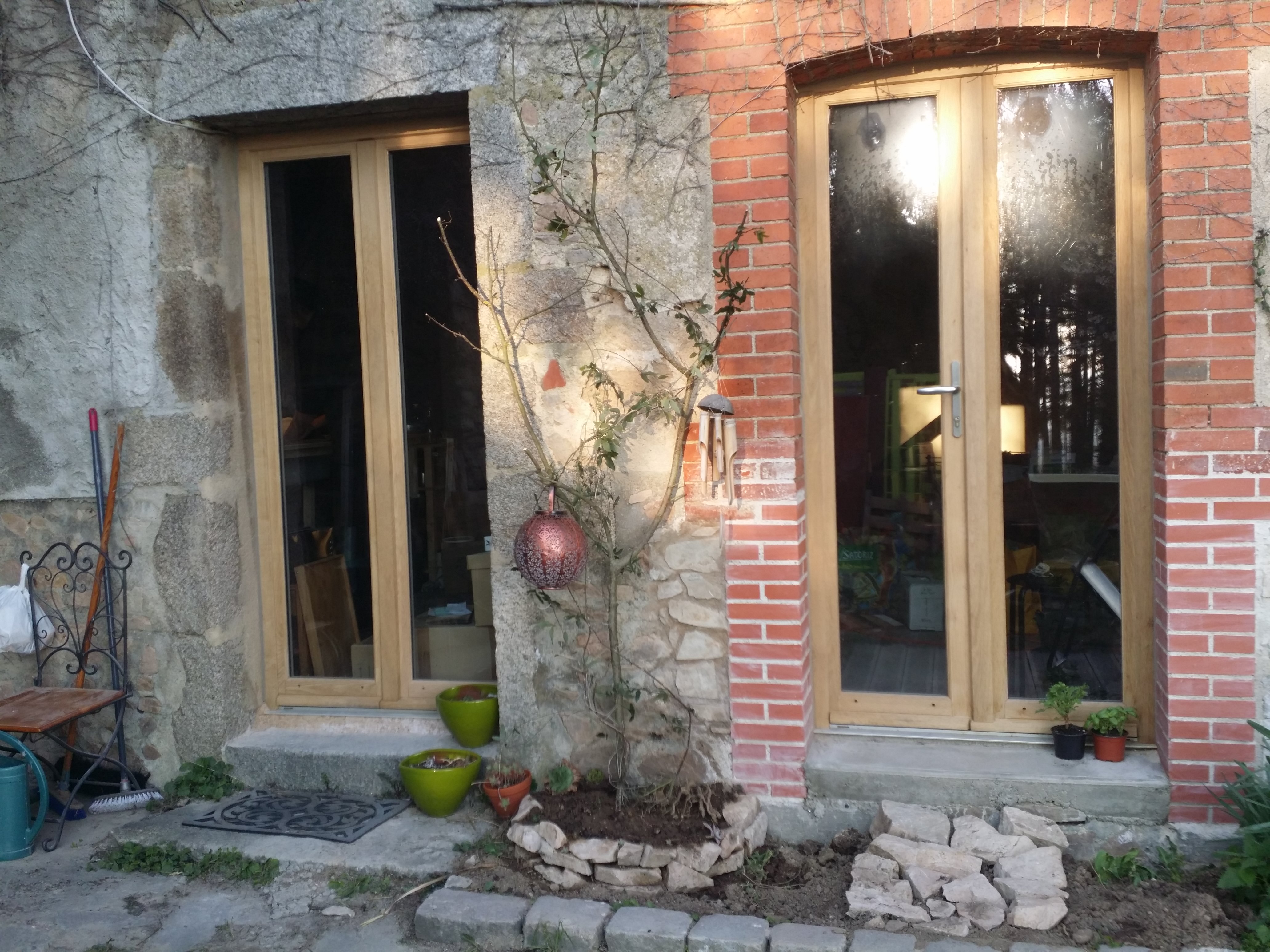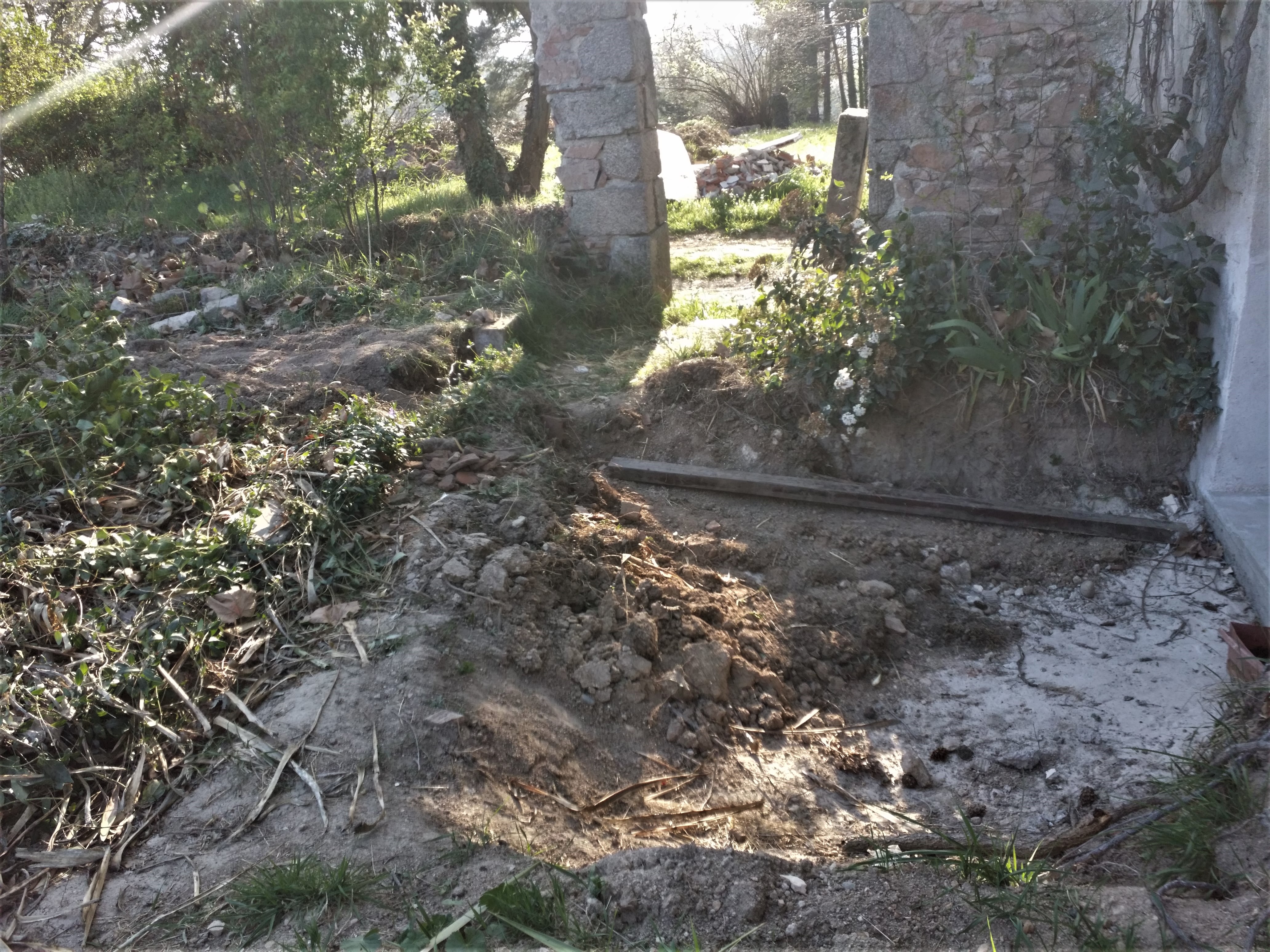 Dans la catégorie pelletage (matinal le pelletage, car là on est côté sud et que le matin ailleurs ça reste frais, quand même), on a la mise à niveau de l'entrée "officielle" de la maison. C'est une des fenêtres transformée en porte-fenêtre, le sol a été décaissé à la pelleteuse sur 2m², il y a un mur et une arche en pierre d'un côté, des bordures en béton de l'autre... Bref, on en a ch.. sué pour virer les bordures en béton (des genres de bornes qu'on ne peut même pas soulever à deux), on a coupé l'arbre qui gênait la santé du pisé et le passage, et maintenant, il faut transformer ce qui ressemble à une zone de bombardements en jolie pente douce multidirectionnelle... Un peu chaque jour, hein.