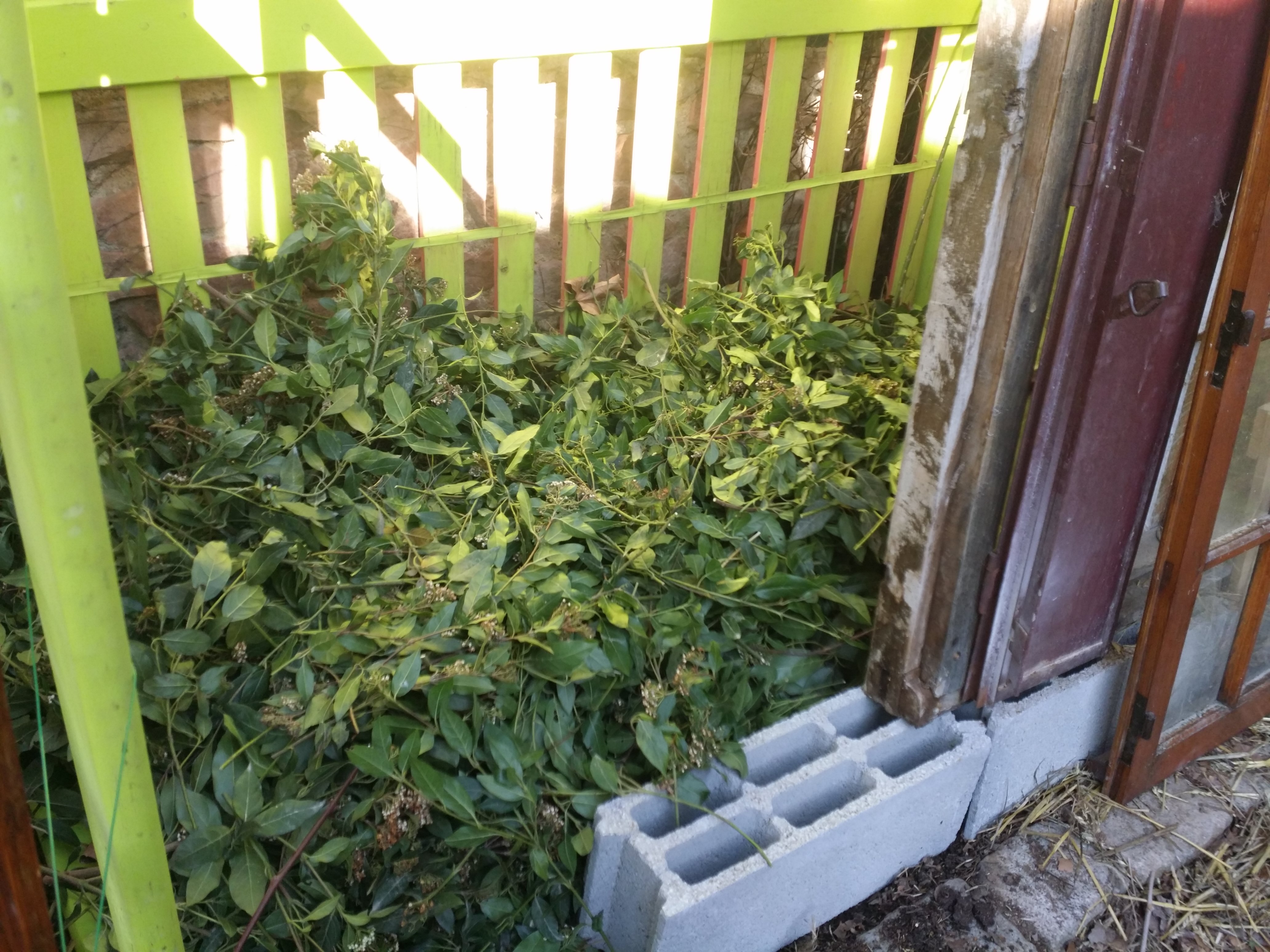 Et puis, comme les trucs qui poussent le font parfois avec vraiment beaucoup d'enthousiasme, il faut aussi parfois couper un peu dedans. (Je vais pas commencer à parler des ronces, parce que je passe environs 2h par jour à en enlever ici ou là et que j'ai du dégager quoi, 3% de ce qui doit être dégagé, mais... Ha, zut, j'ai parlé des ronces). Bref, sinon y'a des trucs à couper plus sympas (entendre, sans épines d'1cm de long), comme par exemple ce buisson de lilas qui avait commencé à digérer le passage potager-compost... Snip, revoilà le passage dégagé !