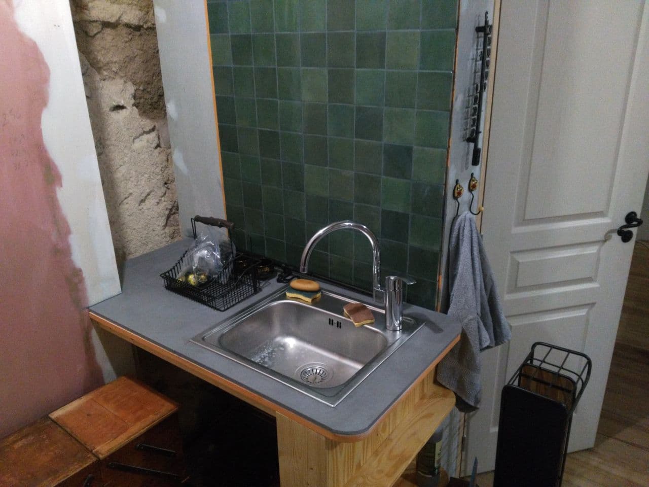 Allez, je te montre même l'évier du coin craft, qui complète le meuble et le carrelage que je t'avais montré y'a quelques semaines :