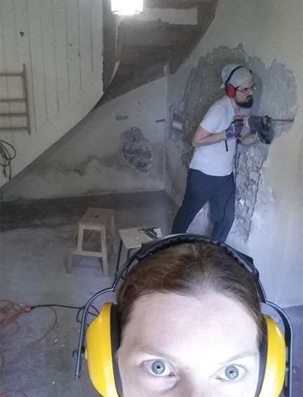Du décroûtage !! Holàlà ce que ça nous avait pas manqué. Les douze trucs sur la tête (foulard, lunettes, masque, casque… Ok que 4 mais c’est déjà trop), le bruit du marteau piqueur (et celui de la pelle qui racle les gravats), la FOUTUE POUSSIÈRE PARTOUT…