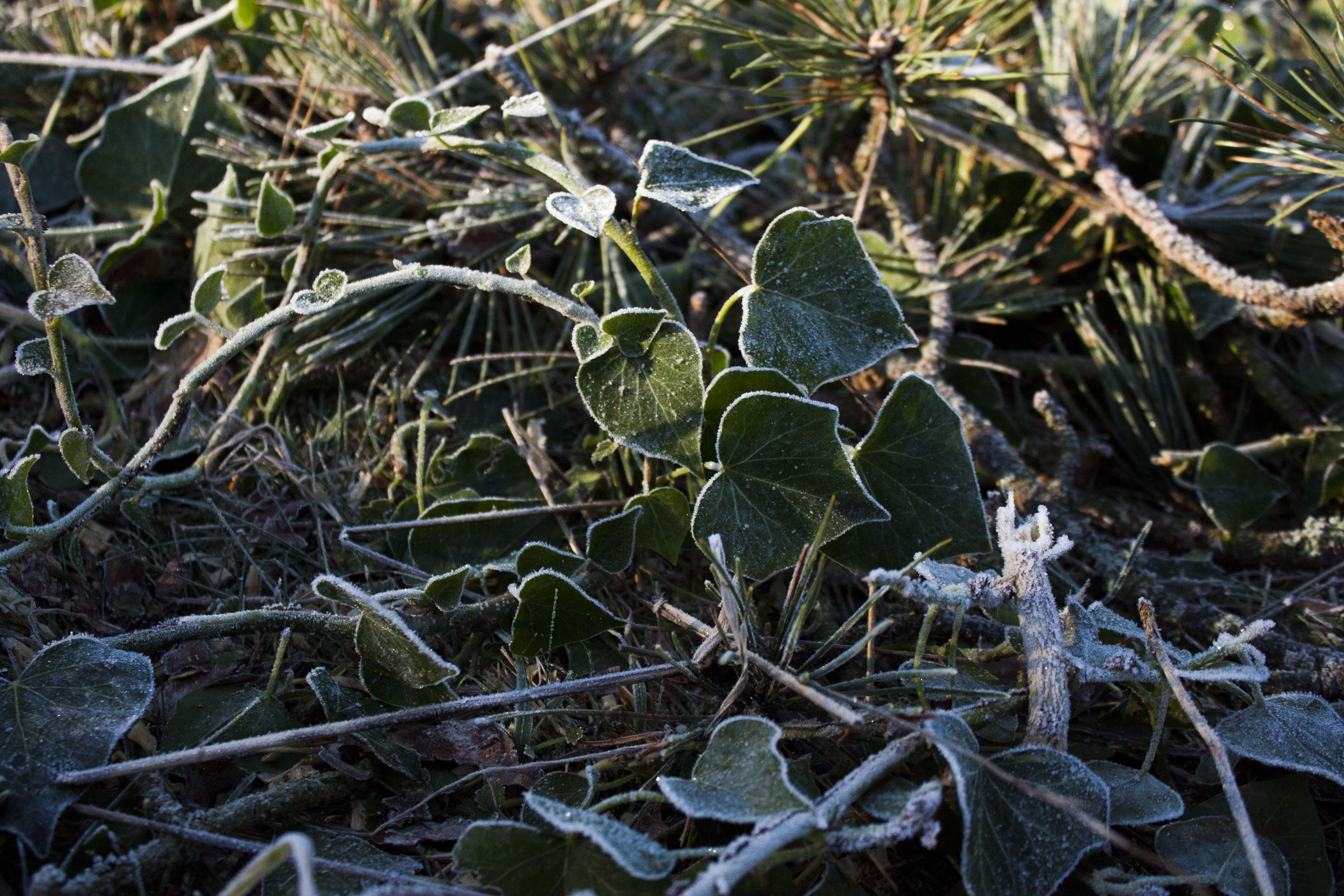On n'avait pas encore eu le temps de préparer les zones de culture du futur potager et c'est tant mieux : enfin, un matin, tout était givré en arrivant, et on a ainsi pu voir quelles zones restent blanches le plus longtemps.