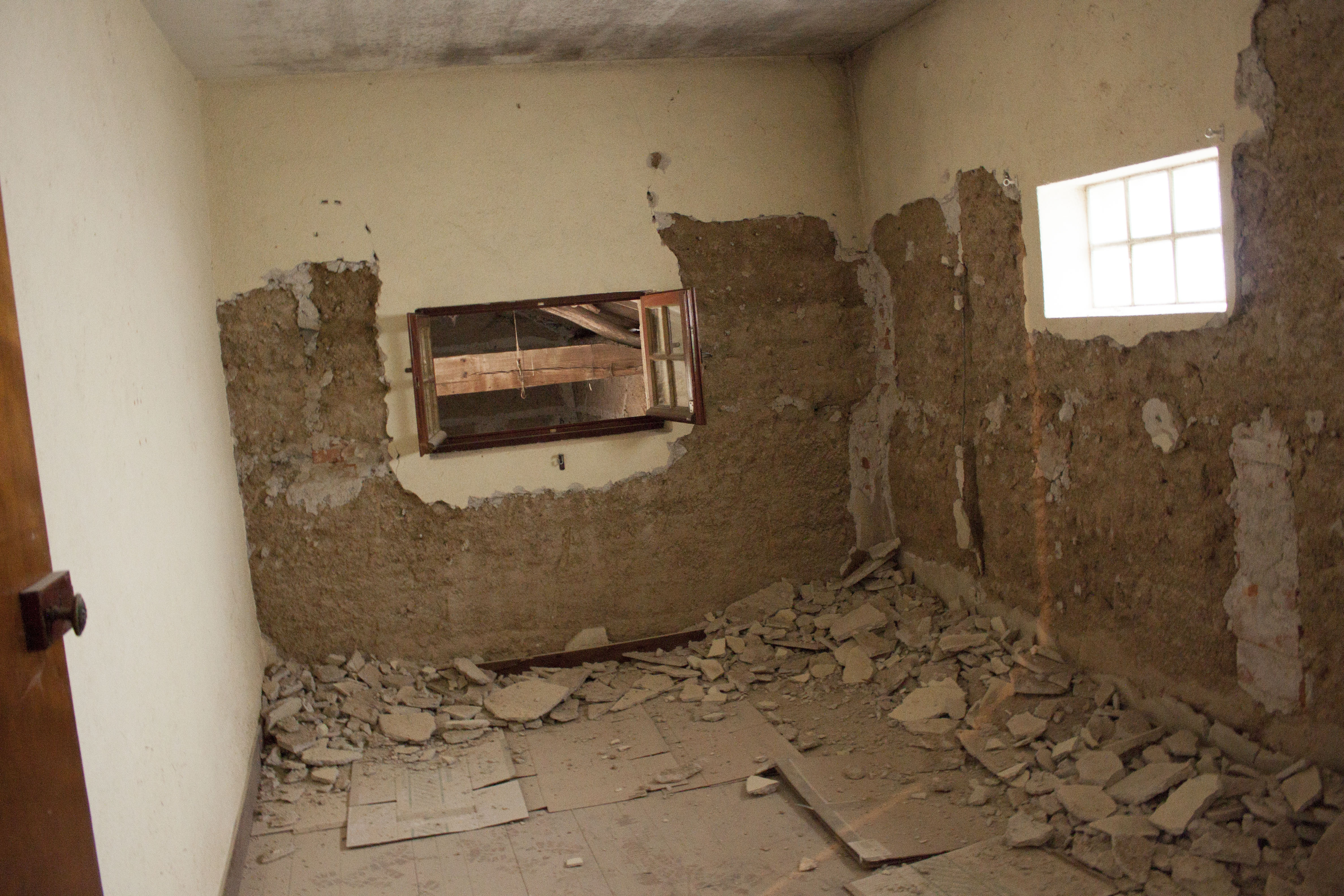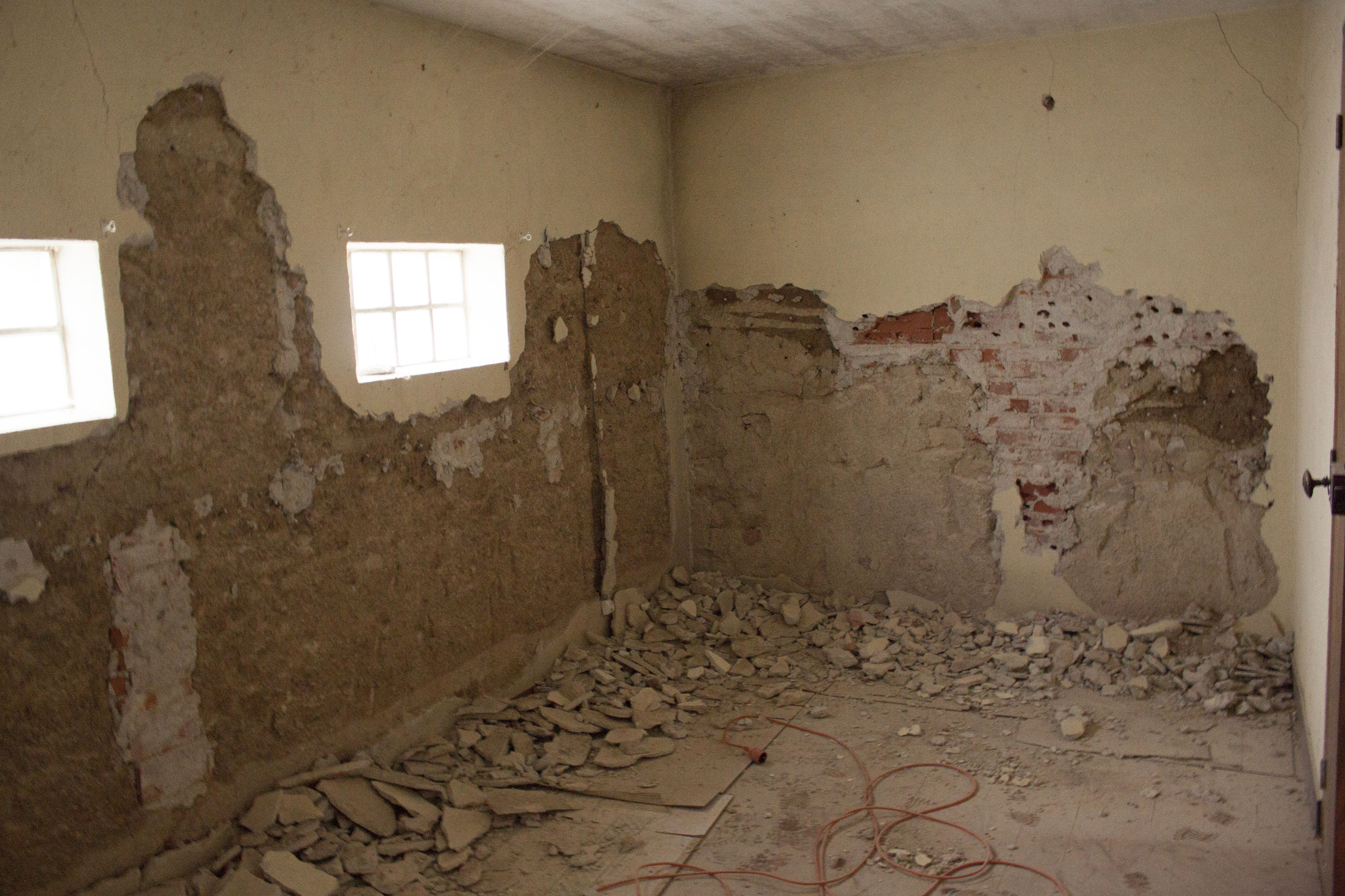(Le mur intact est une cloison, il n'y a donc rien à en retirer. Oui oui, ça veut dire qu'il ne manque que les hauts de murs pour avoir fini la pièce complète !)
