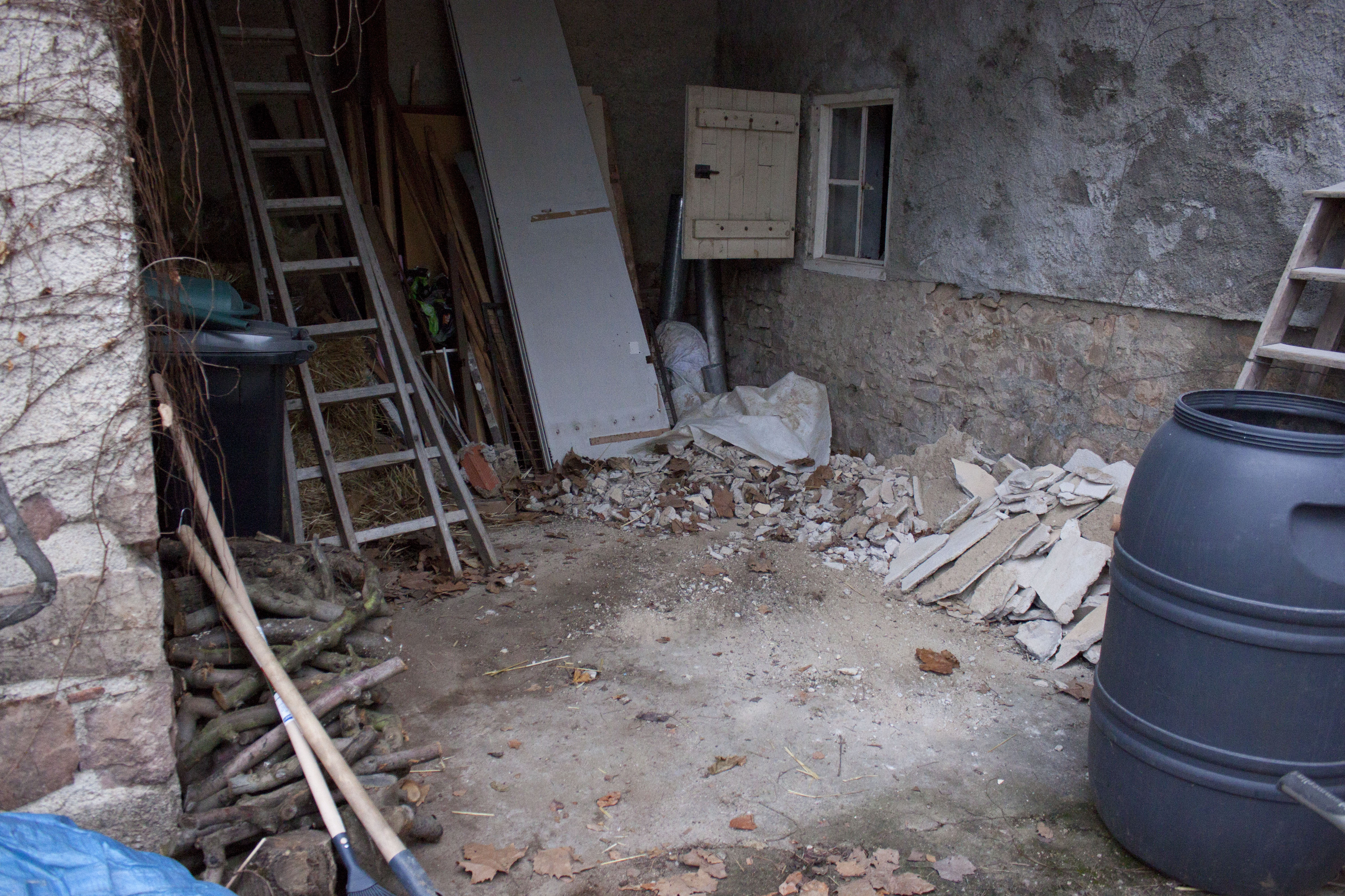 Et puis, la future chambre, qui avait à peine connu quelques coups de burin manuel pour voir ce qui nous attendait, a pris un "petit" coup de désenduitage...