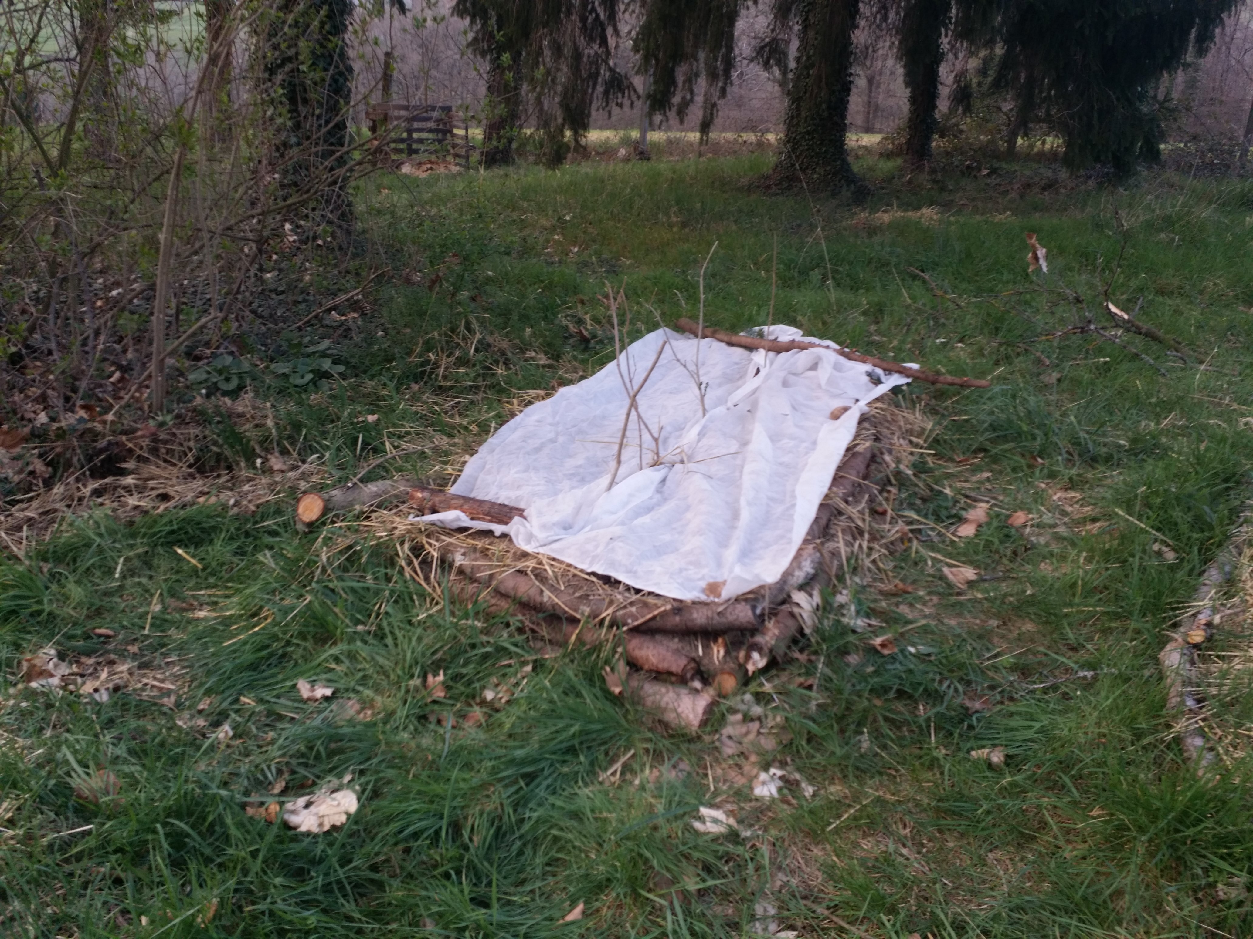 (Une des zones de culture préparées cet hiver, mise en service. On se félicite de les avoir préparées, même si ça ne semblait pas du tout prioritaire sur le moment !)