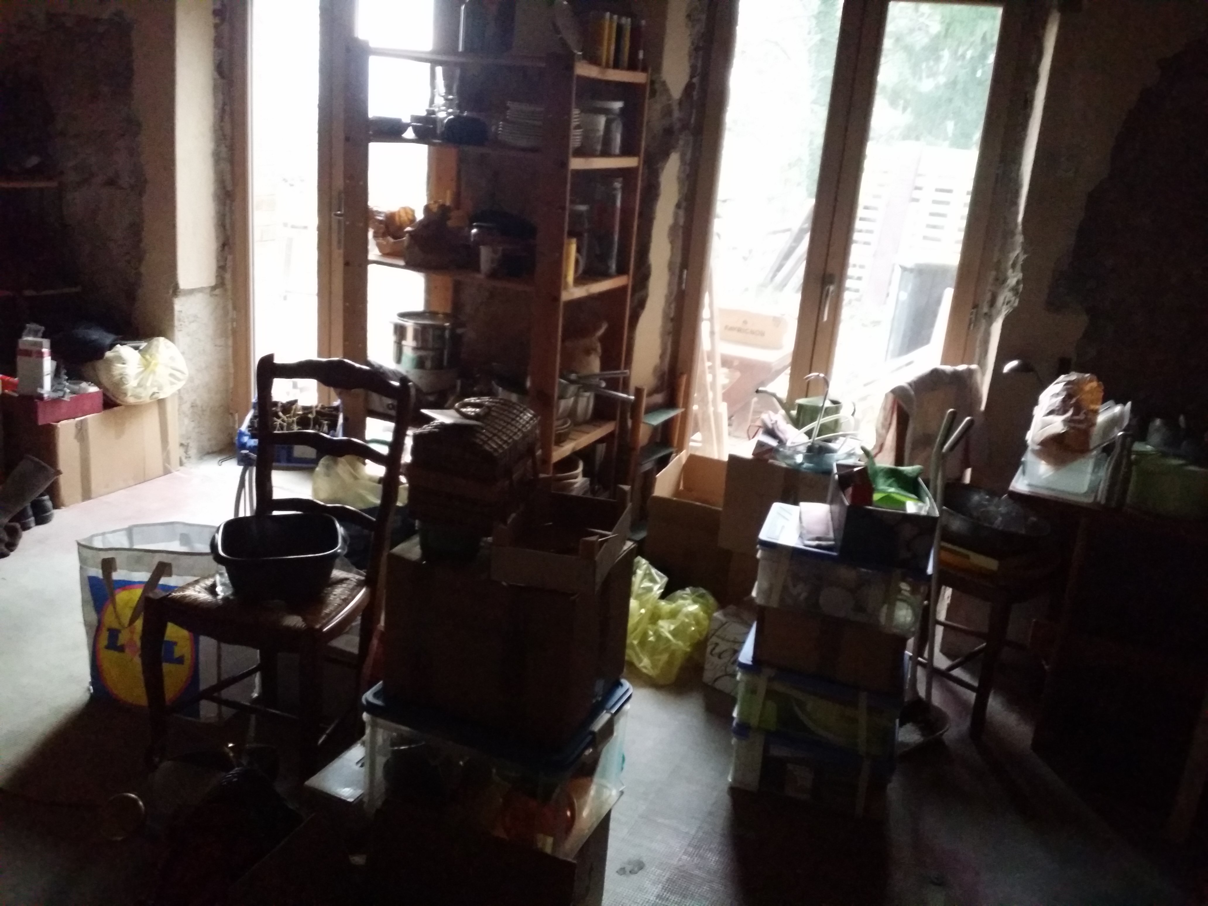 Et puis, on commence à revoir le sol dans la pièce de vie (sol superbe en béton, notons-le ; on va avoir tout le temps de réfléchir à ce qu'on veut mettre dessus plus tard :D )