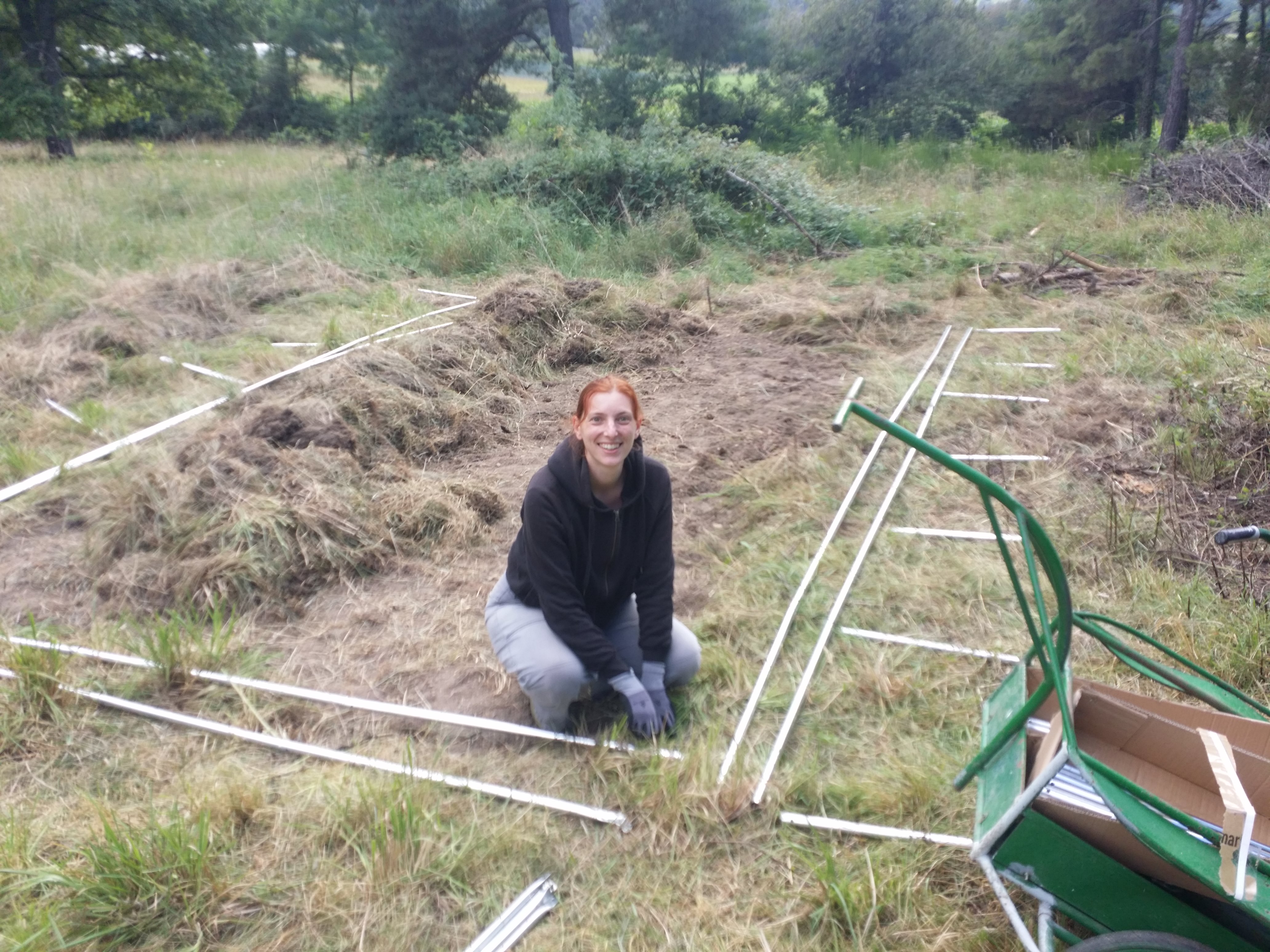 En attendant qu'un autre colis de matos arrive, on a joué à faire des legos de terre (ouais, comme à la maternelle mais avec les mottes du tas du milieu, là.) En vrai, c'est crevant : se pencher pour ramasser les mottes par leur touffe d'herbe, les amener au bon endroit, puis toujours penchée, empiler, empiler, tasser, empiler, empiler...