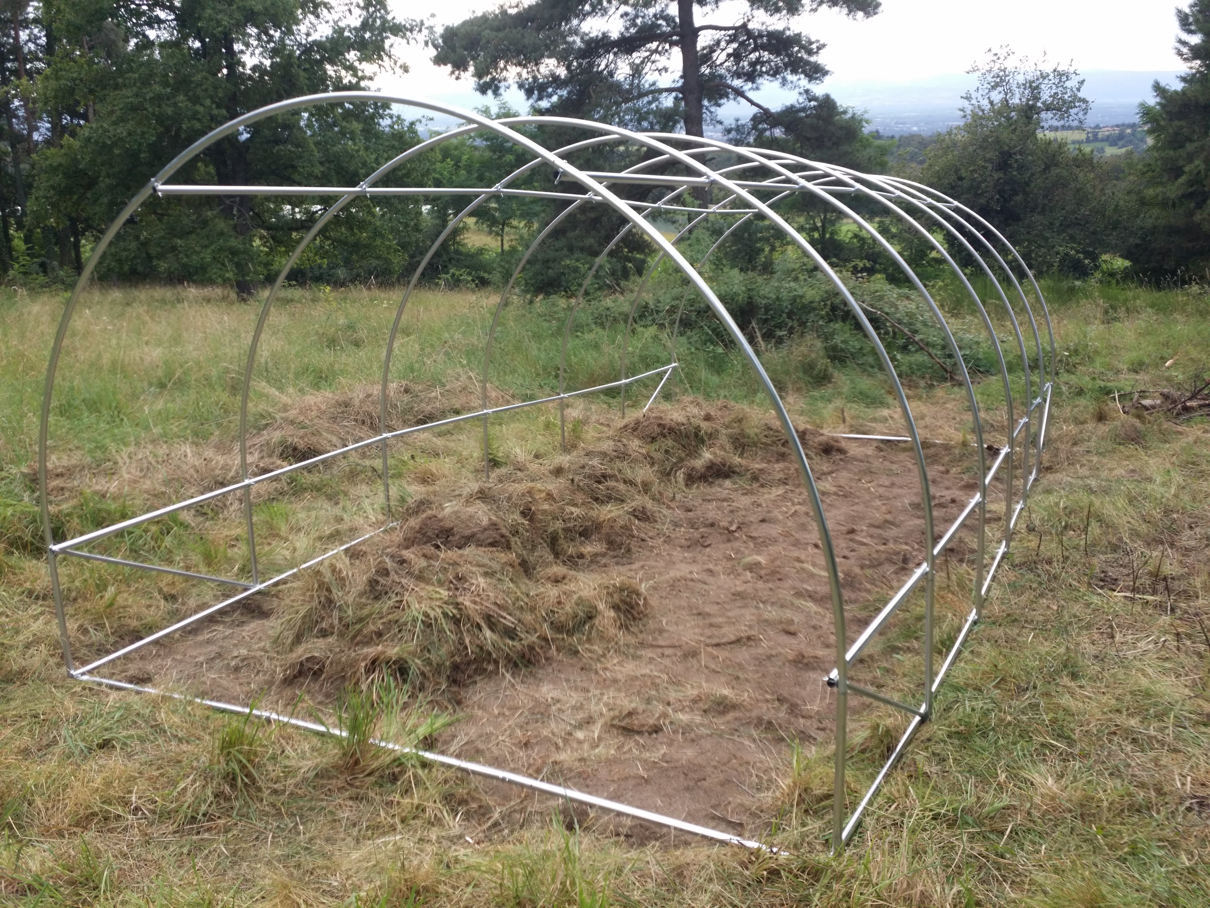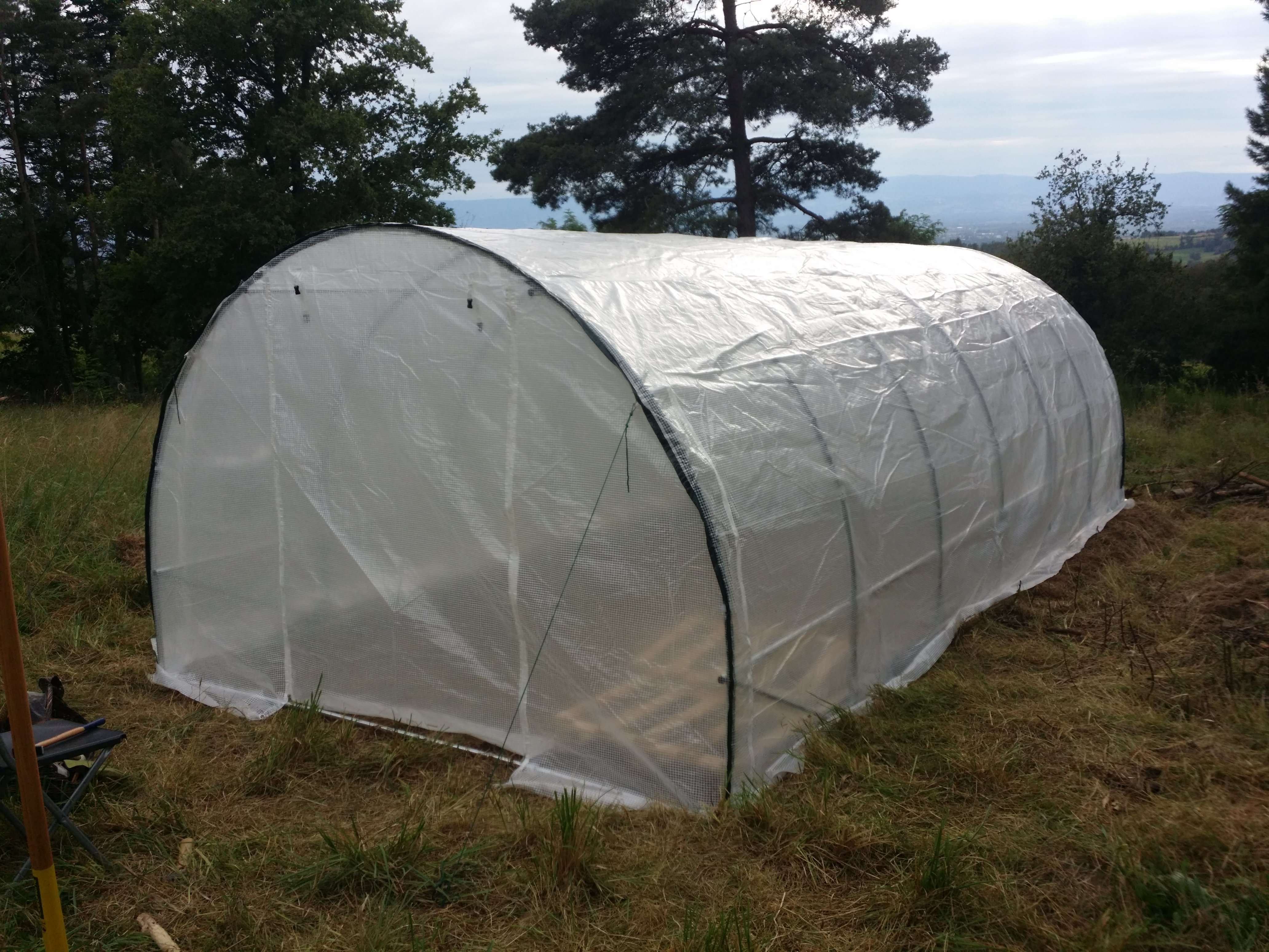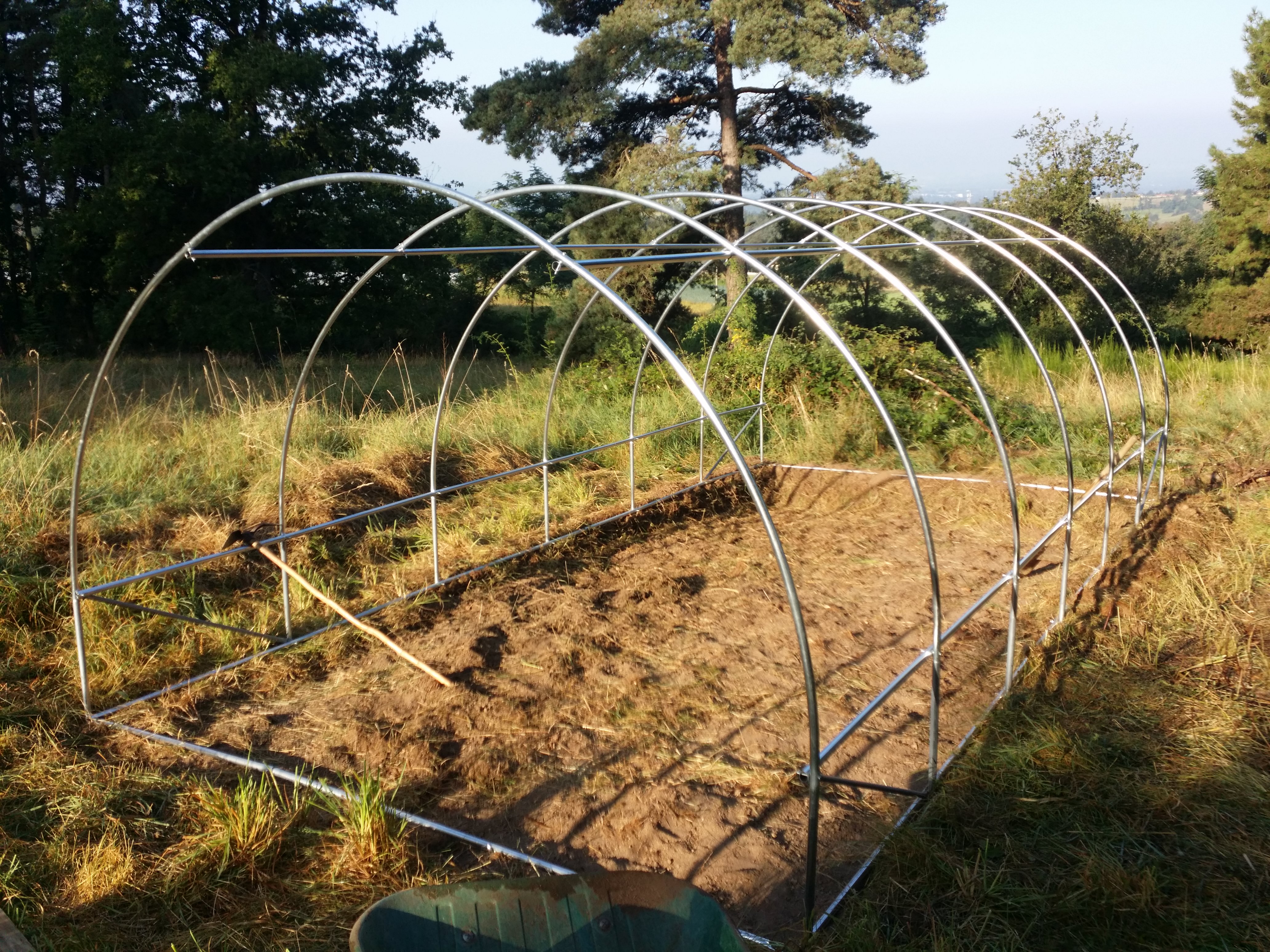 Et puis parfois, des circonstances font qu'on te propose une serre pour ton anniversaire (non, je ferai pas de jeu de mot avec ça, t'façons, ça serait mauvais). Alors, normalement j'aurais dit non, parce que 500€ pour une serre qui ne durera pas plus de quelques années, c'est non, écologiquement et financièrement parlant. Mais bon, quand c'est 4 fois moins cher que ça, que la structure a été vue en vraie et qu'elle est très correcte, et qu'EN PLUS on te l'offre... Tu laisses de côté les "oui mais", t'achètes un bouquin de plus, et tu trépignes !
