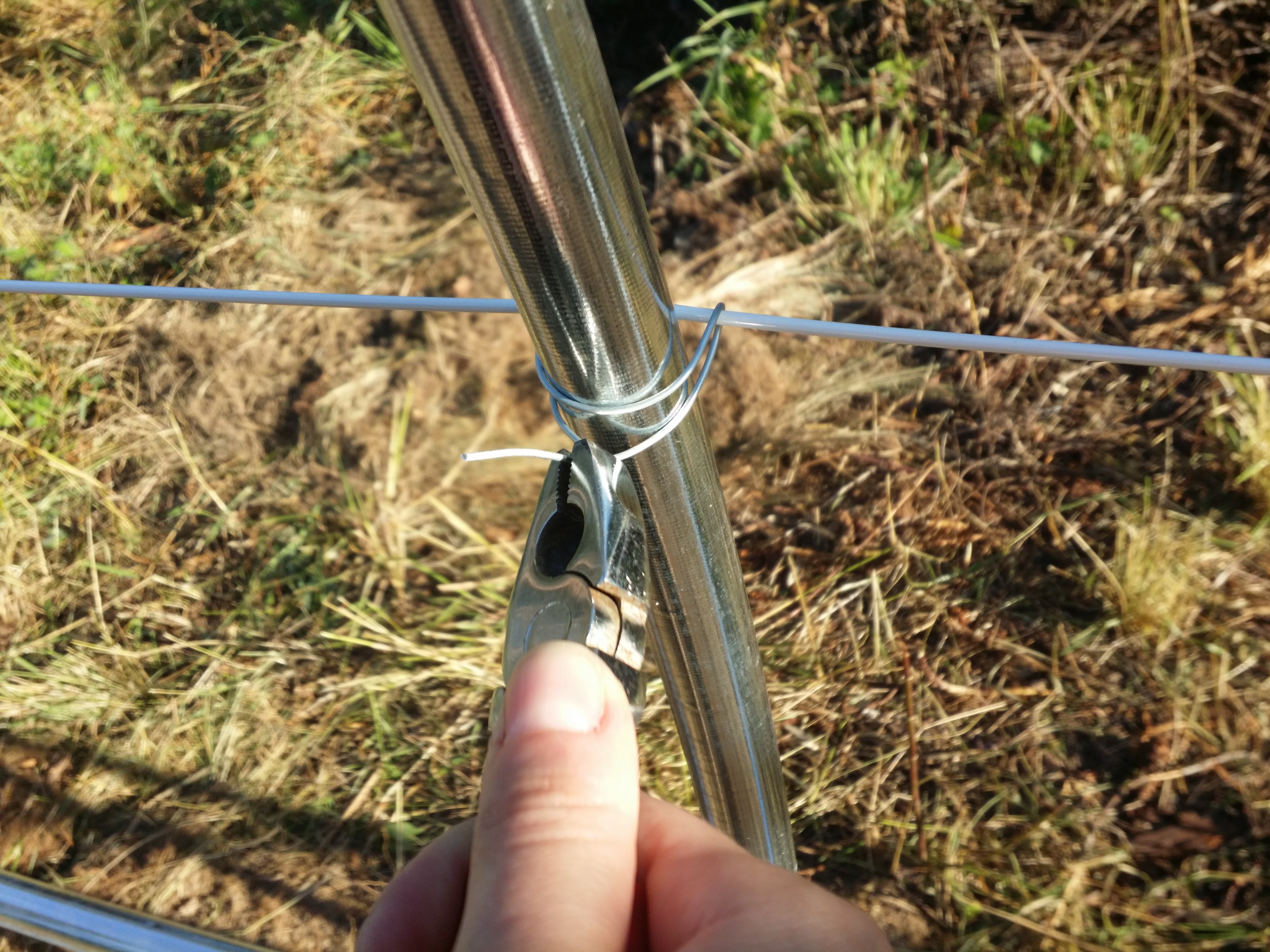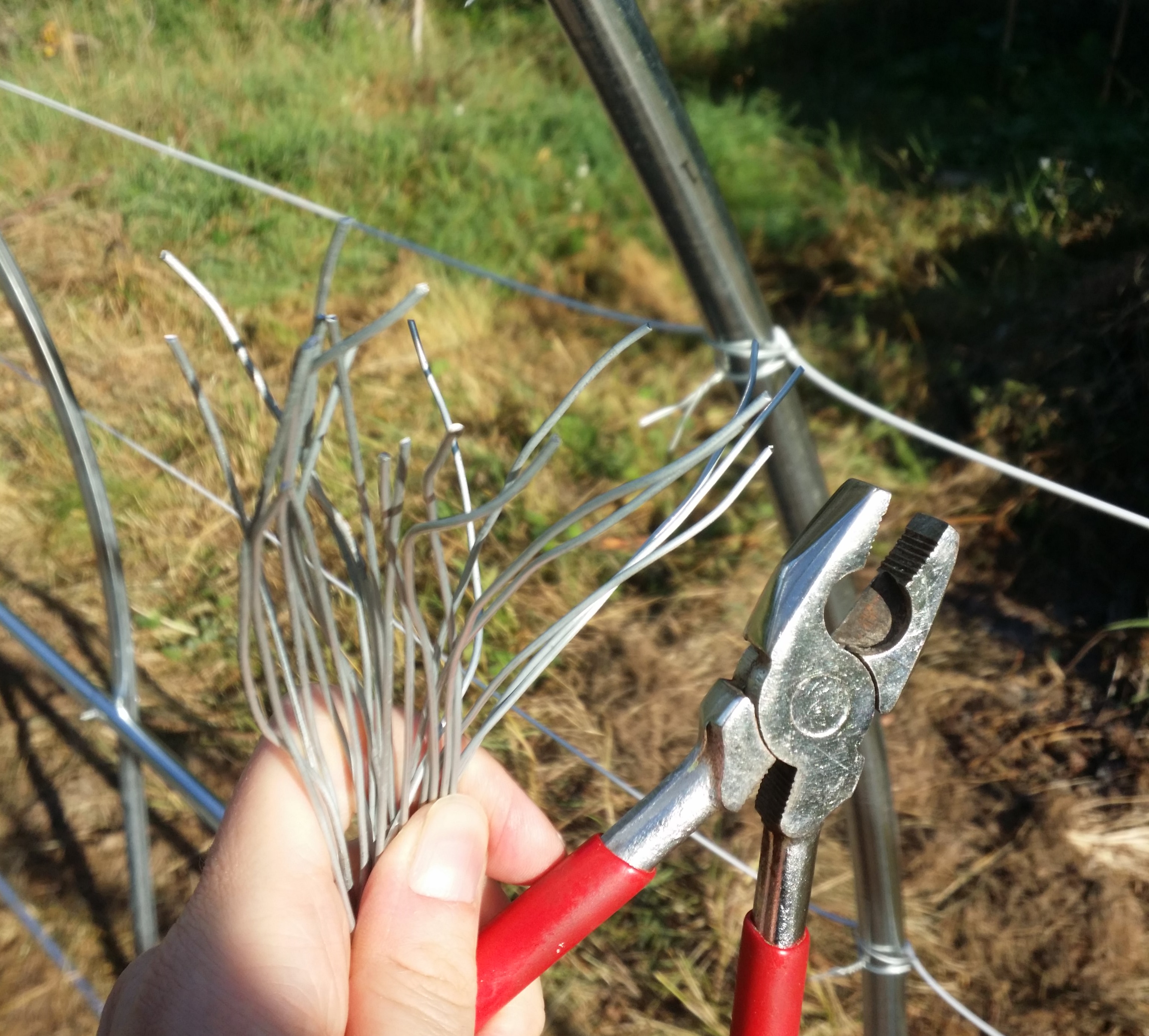 Et y'en avait genre, 200m à passer, soit 27 lignes, soit 54 attaches, sans compter celles qu'il a fallu refaire parce que pas assez tendues (parce que, je sais pas si je l'ai dit, mais ça nique les mains !! Du coup au bout d'un moment, toi aussi tu mollis. Et ton câble aussi...).