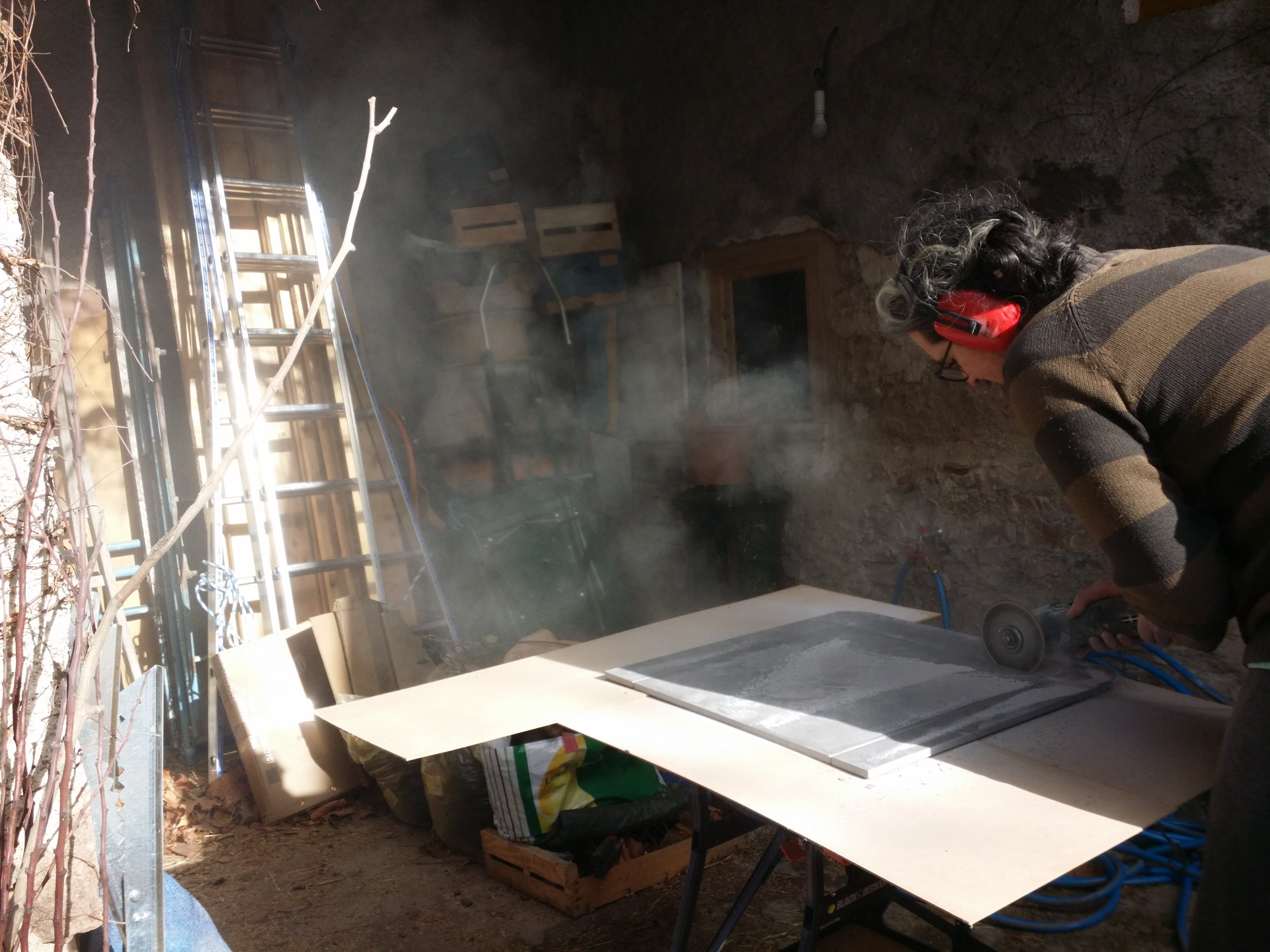 (Pas du tout poussiéreux, la découpe de carrelage... Et puis des découpes simples : en U, en arrondis... xD ) :