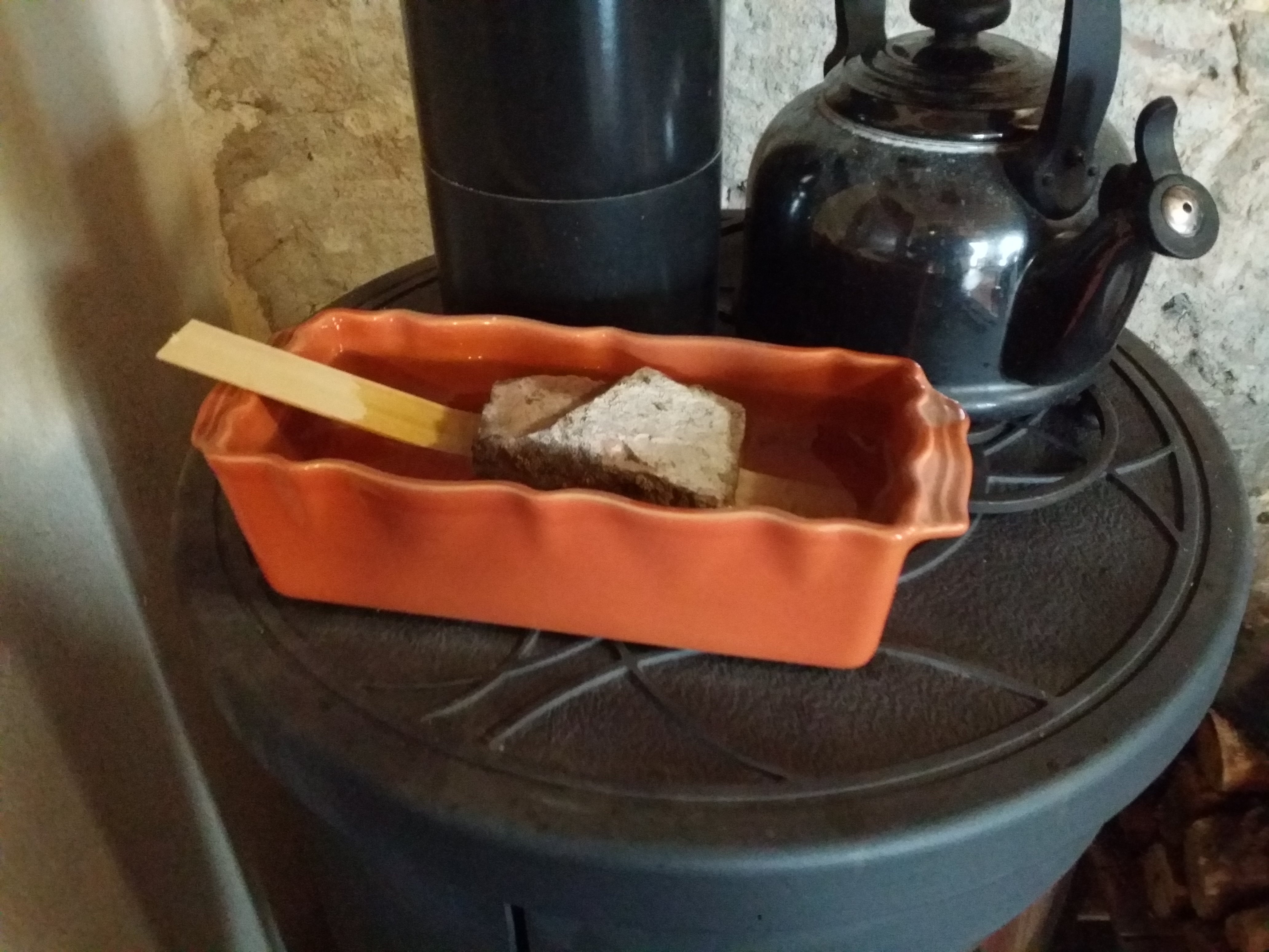 Question bonus : pourquoi qu'on fait tremper un bout de bois dans de l'eau sur le poêle, d'après toi ? (Réponse au prochain épisode ( ou au suivant, mais bref, par là)) :