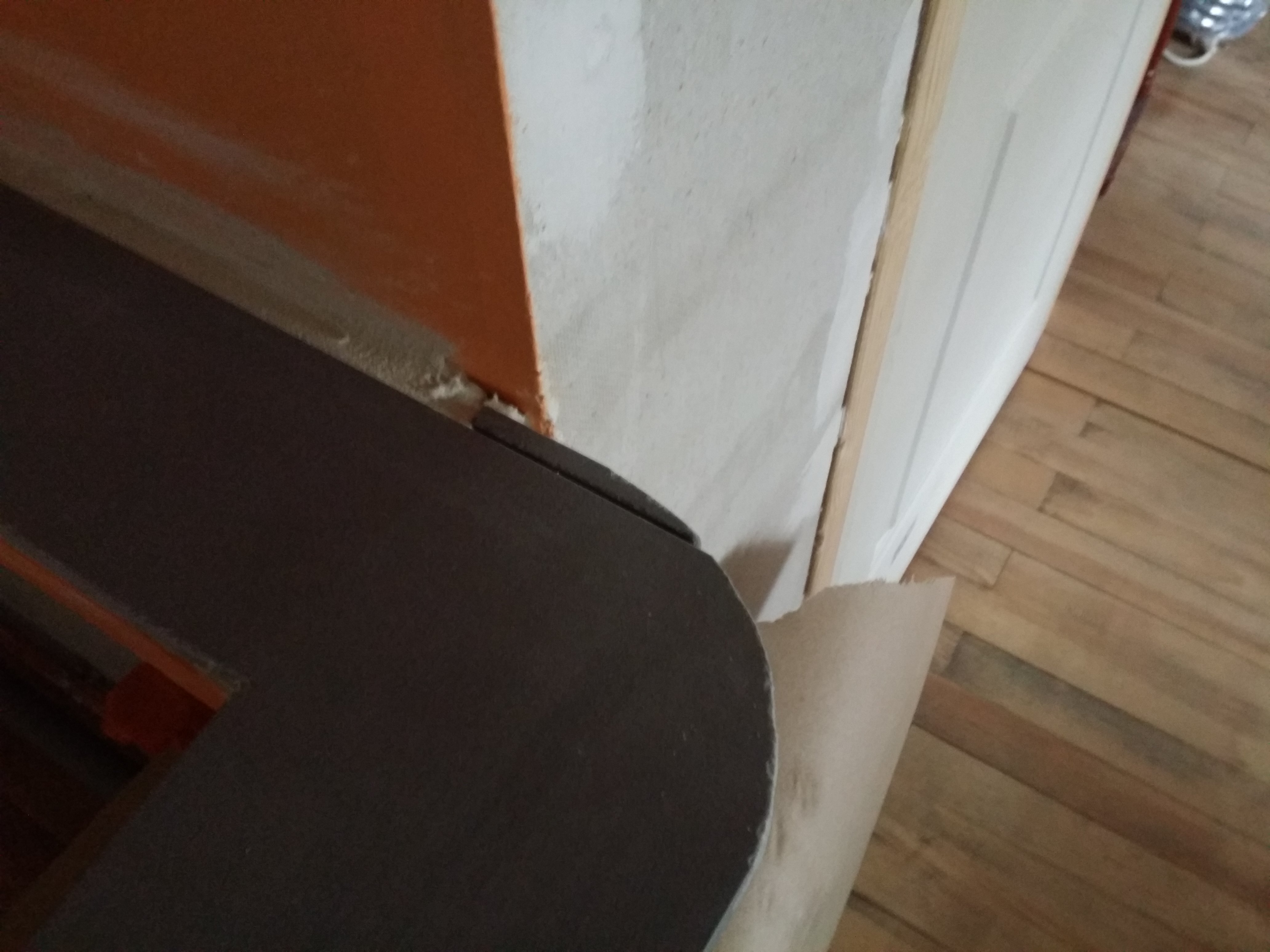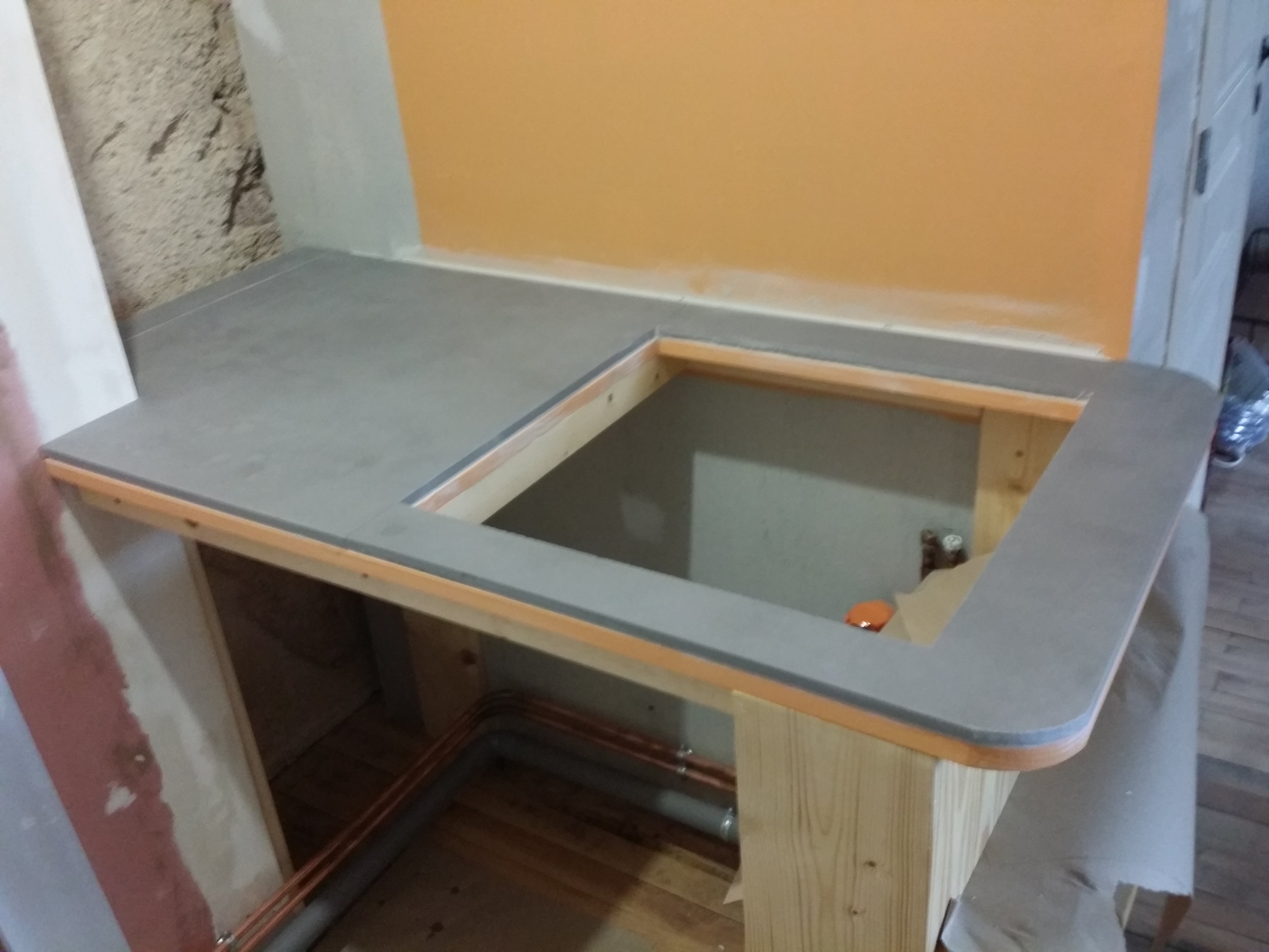 Oui, le plan de travail aussi sera orange. Nan, t'as rien suivi, c'est parce qu'il doit lui aussi recevoir du carrelage ! Et pas du petit : des grosses dalles d'extérieur de 60cm de côté.
