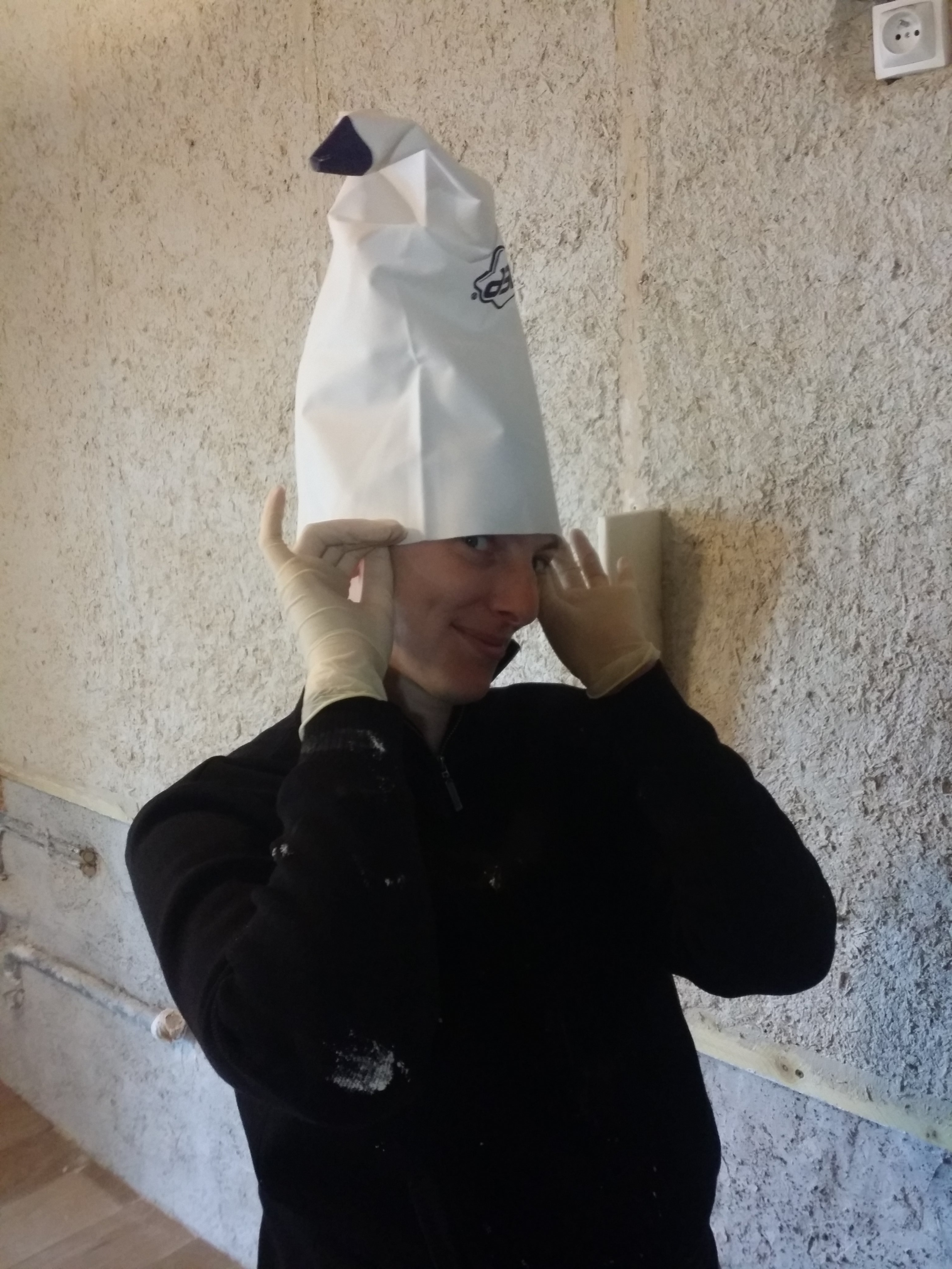 Du coup il a fallu apprivoiser la bétonnière ; elle s'exprime surtout par vrombissements, couinements et postillons de chaux vers nous (merci lunettes et masques), mais on l'a comprise, petit à petit. C'est pas plus mal, parce qu'on lui a faire faire quelques centaines de litres de préparations diverses...